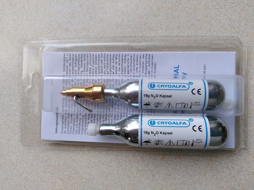 Cryoalfa Original mit Beschreibung, mit 16 g N20 Ersatzkapsel, VB € 135,-